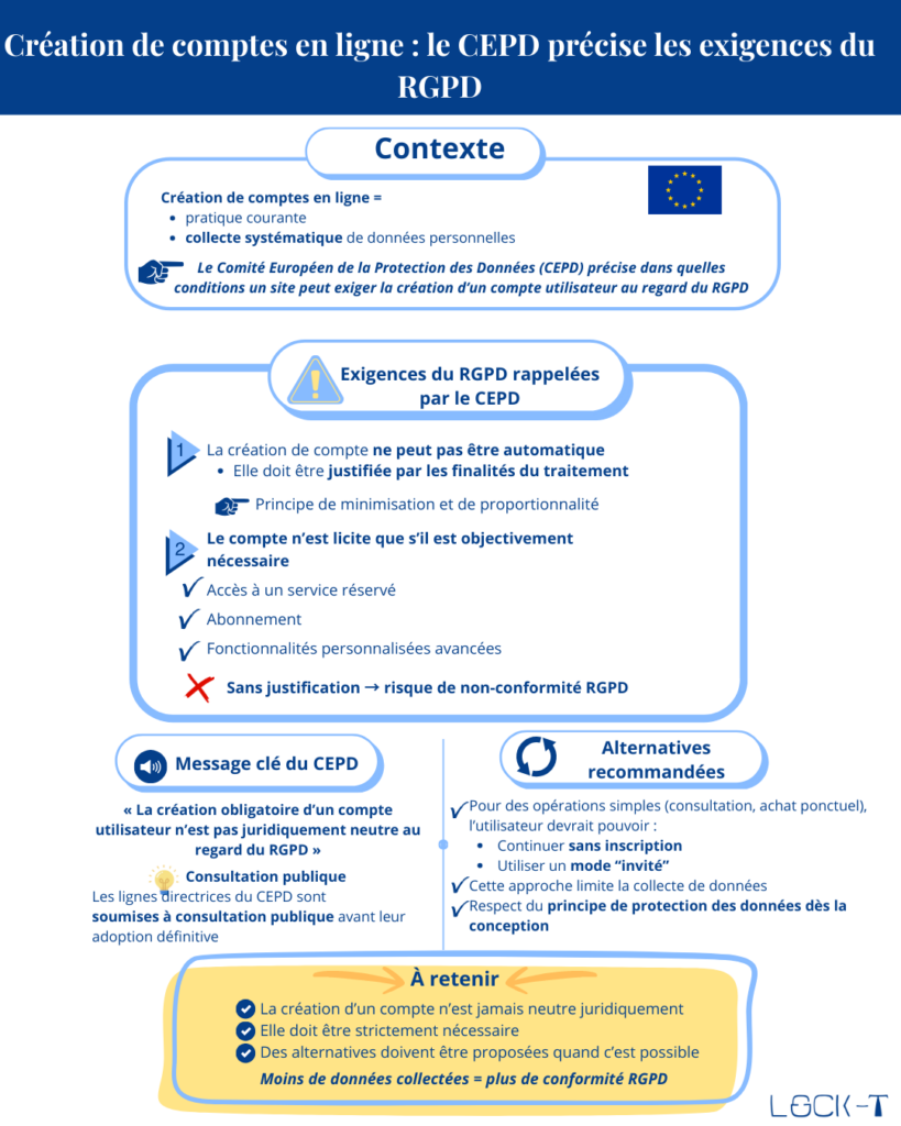 Création de comptes en ligne : le CEPD précise les exigences du RGPD January 13, 2026 by Gustave ← Retour aux ressources et actualités